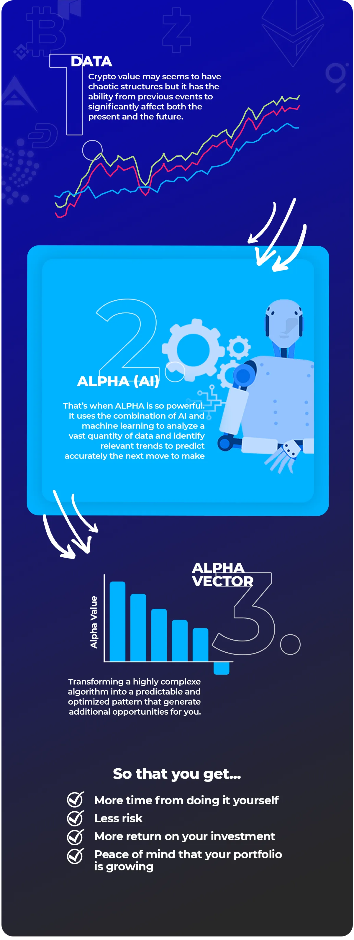 We are currently developing a revolutionary algorithm, called Alpha, that will allow users to maximize and stabilize their returns on investment.
